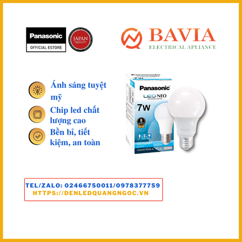 Đèn LED Neo Bulb PANASONIC 5W thiết kế dạng tròn, công suất nhỏ thường dùng để chiếu sáng và trang trí trong nhà. Tuổi thọ đèn cao tiết kiệm điện năng tiêu thụ so với đèn thường. Vỏ đèn Bulb tròn được làm từ nhựa cao cấp, bền bỉ với tác động vật lý bên ngoài, khả năng vỡ thấp.
