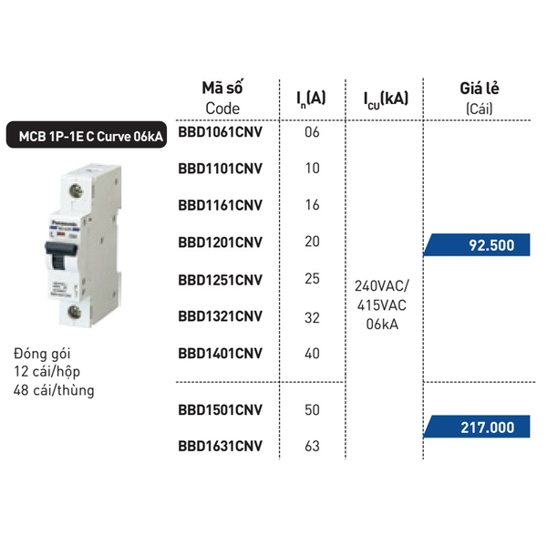 MCB 1P -6kA : 50A, 63A : giá 151.900 đ