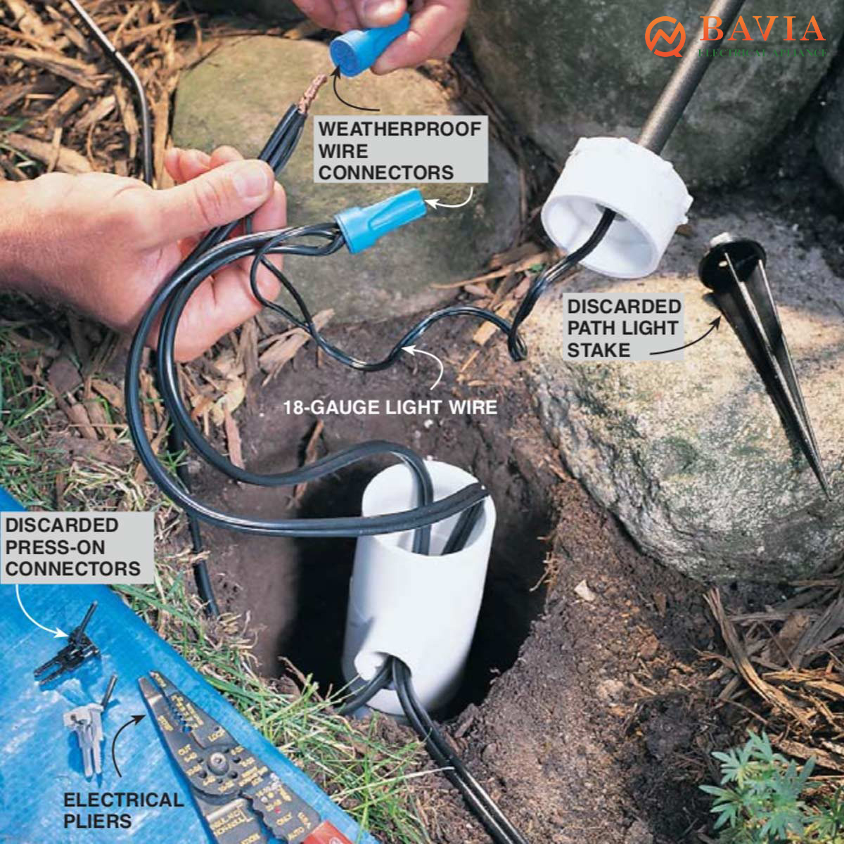 Vì lợi ích an toàn, hãy gọi Bên Điều Hành Quản Lý Điện khu vực chỗ bạn hoặc tổng đài Điện Lực Nhà Nước để đánh dấu vị trí của dây điện và đường ống ngầm trước khi bạn đào hệ thống chiếu sáng điện áp thấp của mình. Dịch vụ này thường miễn phí và bạn sẽ tránh được những bất ngờ nguy hiểm và tốn kém.