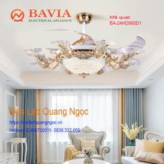 Quạt đèn trang trí BA-24HD560D1 Màu: Màu đồng nhạt Sải cánh dài: 1100mm Vật liệu cánh: Cánh nhựa Bóng đèn 8*E14 24w Đèn có 4 chế độ màu Quạt có 3 chế độ gió Bảo hành : 12 tháng Ứng dụng: trang trí...