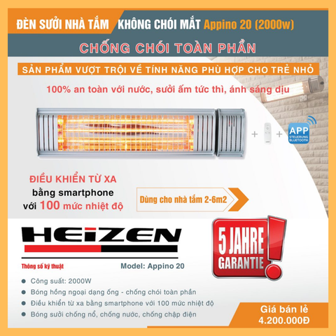 Đèn sưởi không chói mắt 2000W có điều khiển - HEITR