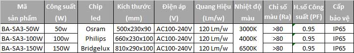 Đèn đường Led BAVIA BA-SA3 Được thiết kế kiểu dáng hiện đại, Thân đèn bằng hợp kim nhôm