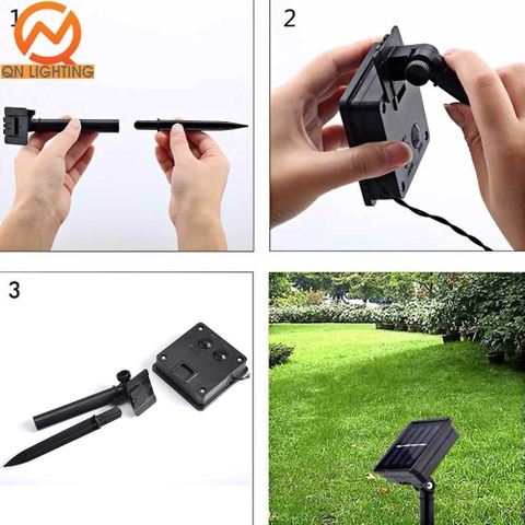Đèn được tính điện năng lượng mặt trời tự động khi tiếp xúc với ánh sáng mặt trời và tự động bật trong bóng tối.