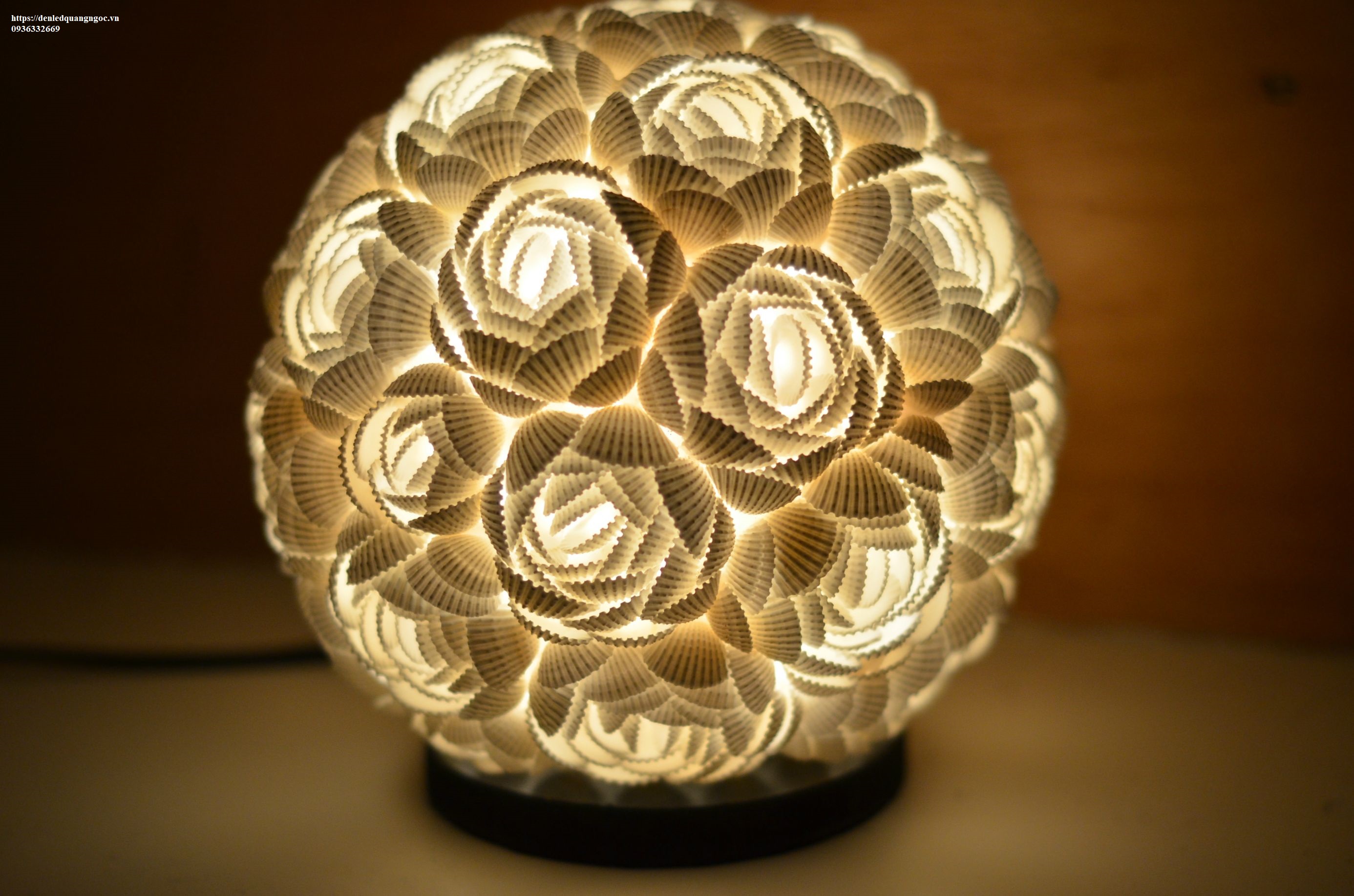 7 . Đèn nghệ thuật : là trong những dòng đèn chế tác bằng tay tinh xảo khó cưỡng. (Ảnh có kích thước lớn để bạn biết được chất liệu làm ra bề mặt bao quanh đèn , với những cái vỏ sò đã được chắt lọc đồng đều )